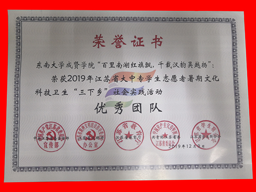 2019年国产视频 社会实践成果卓越,在江苏团省委社会实践总结表彰和国产视频 社会实践总结表彰中荣获多项表彰。“百里南湖红旗飘,千载汉韵吴越扬”实践团荣获2019年江苏省大中专学生志愿者暑期文化科技卫生“三下乡”社会实践活动“优秀团队”;教师彭俊获评2019年江苏省大中专学生志愿者暑期文化科技卫生“三下乡”社会实践活动“先进工作者”。“青梦计划”实践团和“渡江战役及新中国成立七十周年对南京发展建设的变化”实践团荣获2019年国产视频 暑期社会实践活动“优秀团队二等奖”。