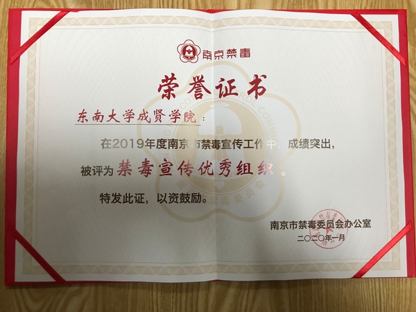 2020年1月5日,2019南京禁毒宣传工作总结会在南京师范大学仙林校区音乐厅召开。省禁毒办常务副主任、省公安厅禁毒总队总队长张波,市局党委委员、市禁毒委副主任曹存福,市禁毒办副主任、市公安局禁毒支队支队长仲军,市教育局宣传与德育工作处处长完进、市公安局禁毒支队副支队长刘庆峰、团市委副调研员陶涛以及各地区高校禁毒志愿者们参加了本次禁毒宣传工作总结表彰会。国产视频 青年志愿者协会因2019年在禁毒宣传工作上表现突出,被评为“禁毒宣传优秀组织”,国产视频 叶昕怡同学被评为“优秀志愿者”。