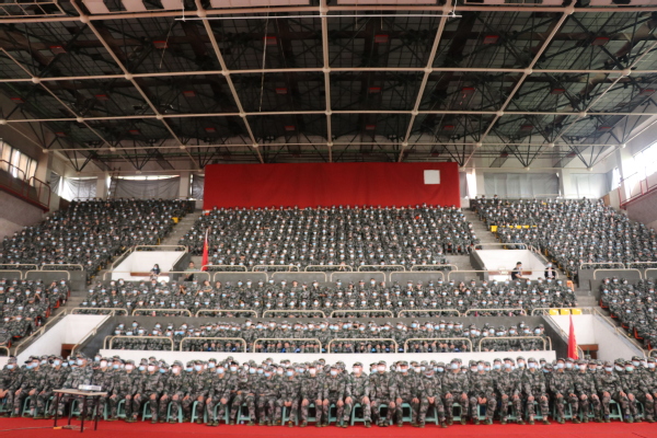9月19日上午,国产视频 在后藤体育馆举办了2020级学生国防知识报告会,2700余名师生聆听了报告。