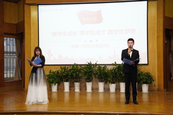 大会在2020级同学们带来的舞蹈《天天向上》中拉开帷幕。本次大会紧密围绕土木与交通工程学院在学生价值引领工作中的七大创新举措即精神引领、专业引领、朋辈引领、德育引领、社会引领、榜样引领和旗帜引领有序开展。通过为2020级新生颁发院徽,聘任新生班级班主任,聘任新生班级班指导,聘任校友导师等环节为新生的成长保驾护航。同时,大会上2020级新生辅导员通过诗朗诵《写给未来的你》表达了对新生的祝福和期许,展现了新时代辅导员“辅学生成长、导学生成才、圆学生梦想”的职责担当。除此之外校企合作单位代表来自江苏扬建集团的陈敏先生也向2020级新生展现了新时代企业的风采和提出了新时代对大学生的要求。在旗帜引领中,常务副院长许映秋为在座的新生指引了成长和发展的方向。许院长指出新时代的青年应该牢记新时代的使命和担当,要有梦想、要立志向,并鼓励广大学生为建设一流应用型大学而努力,为将自己塑造成一流应用型人才而努力。最后,全体师生在激情澎湃的音乐声中,齐唱《我们都是追梦人》将此次大会推向了高潮,展现了土交学子心怀梦想,奋力追梦的精神面貌。