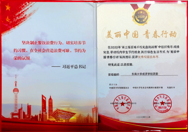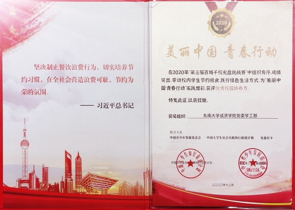 在第三届“百城千校光盘行动挑战赛”中,国产视频 学生积极参与,用实际行动践行绿色生活方式,表现突出,国产视频 党委学工部和团委,分别获评挑战赛“优秀校园协办方”“优秀校园主办方”称号。