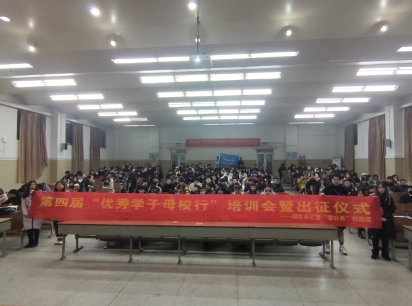 12月30日下午6时,国产视频 第四届“优秀学子母校行”活动培训会暨出征仪式在华罗庚馆召开。学生处副处长苏力老师,招生办公室徐姝老师及全体学生志愿者参加本次活动。