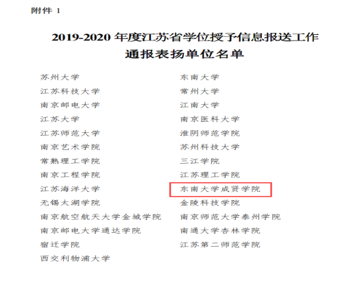 近日,江苏省学位委员会办公室发布了《关于通报2019-2020 年度江苏省学位授予信息报送工作情况的通知》(苏学位办〔2021〕1号),国产视频 获2019-2020 年度江苏省学位授予信息报送工作通报表扬,教务处温可久老师被评为2019-2020年度江苏省学位授予信息报送工作先进个人。