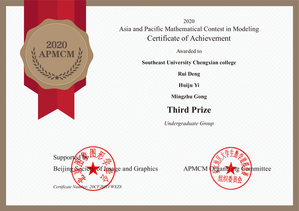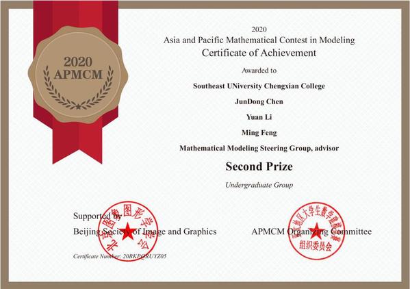 近日,2020年第十届亚太地区大学生数学建模竞赛(APMCM)成绩揭晓,国产视频 学生成绩斐然,喜获国际二等奖一项、三等奖两项。