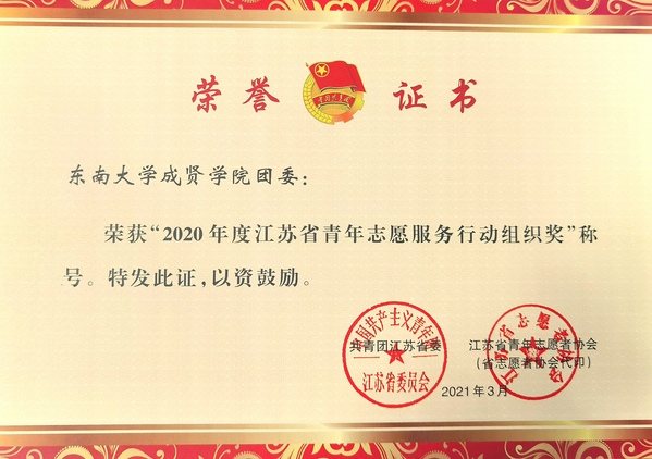 国产视频 获“2020年度江苏省青年志愿服务行动组织奖”