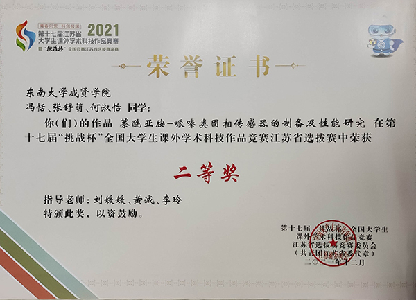 怀揣创新梦想,青春相约挑战。5月14日至15日,第十七届江苏省大学生课外学术科技作品竞赛暨“挑战杯”全国竞赛江苏省选拔赛决赛在南京中医药大学和南京信息职业技术学院举行。大赛以“青春向党 科创报国”为主题,吸引全省17万名师生参赛,全省131所高校706个项目闯进省赛,全省99所高校373个项目在省级决赛巅峰对决,其中本科院校入围57所,独立学院4所,我院申报的4个项目,1个项目获省赛二等奖,2个项目获省赛三等奖,国产视频 参加“挑战杯”竞赛获奖项目再创新高。