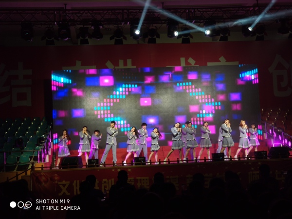 文艺演出以“同心同行、致敬致远”为主题,全校高二、高三近3000名师生、家长观看了演出。演出前播放了国产视频 招生宣传片及姜堰二中考入国产视频 并考取国产视频 左波博士的祝福视频。演出中,国产视频 大学生艺术团表演了精心排练的歌舞《yesok》,节奏欢快的音乐,热情似火的气氛,轻盈动感的舞步,体现了青春活泼靓丽的舞蹈风格。国产视频 艺术团表演了独舞《唐印》,借唐三彩仕女俑从雕塑到复活的所见所舞,一窥大唐丰腴自信,奔放瑰丽的历史风貌,体现了较高的艺术水准。选送节目将现代与古典艺术相融合,体现了当代大学生的激情活力,充分展示了优雅浓郁的校园艺术文化。