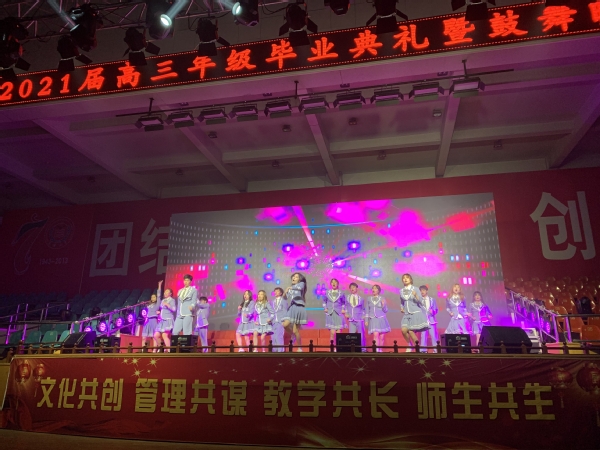 江苏省姜堰第二中学创办于1943年,距今已有78年办学历史,是泰州地区享有盛誉的江苏省首批重点四星高中,连续多年在高考前夕举办“高三毕业典礼暨鼓舞大会”,每年邀请3-4所高校参演,今年国产视频 与南京邮电大学、江苏大学、江苏科技大学一同受邀,见证2021届高三学子的毕业典礼。