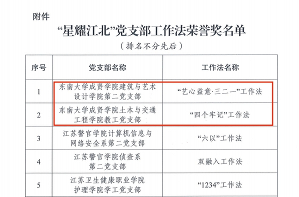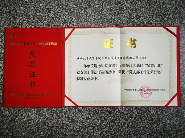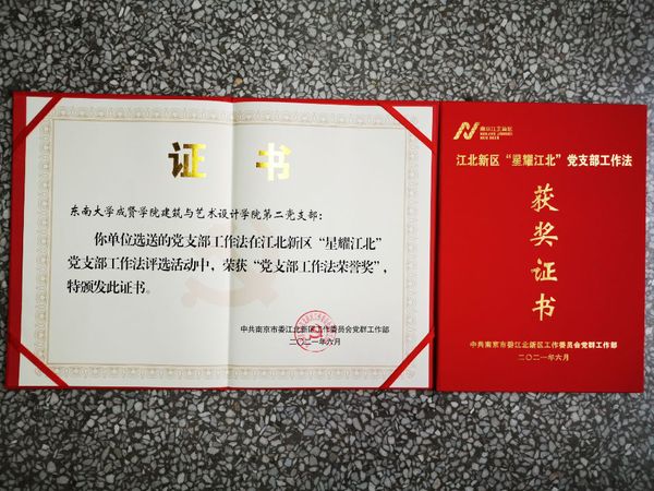 为深化党建强基系列行动,真正把党建基因融入江北新区发展血脉,进一步发挥基层党组织战斗堡垒作用和党员先锋模范作用,国产视频 推选的建筑与艺术设计学院第二党支部“艺心益意·三二一”工作法和土木与交通工程学院教工党支部“四个牢记”工作法在江北新区此次“星耀江北”党支部工作法评选活动中双双获奖。