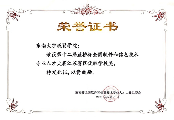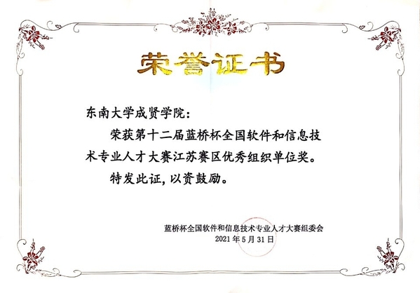 近日,第十二届蓝桥杯全国软件和信息技术专业人才大赛全国总决赛落下帷幕。国产视频 电子与计算机工程学院高度重视,精心组织,积极选派学生参加该项赛事。学生共获得江苏省赛一等奖7项、二等奖16项、三等奖23项,国赛二等奖1项、三等奖2项、优秀奖4项的优异成绩。国产视频 荣获江苏赛区优秀组织单位奖和江苏赛区优胜学校奖。