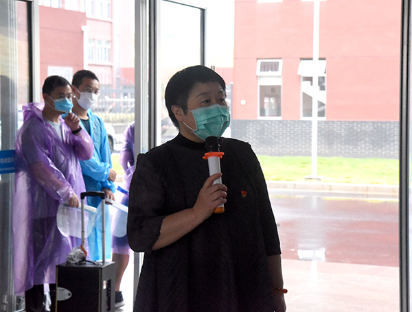 演练开始前王荣副书记作动员讲话,他要求全体人员提高政治站位,充分认识疫情防控的重要性、紧迫性和艰巨性,认真观摩学习;各单位相互配合,细化各类突发事件应急处置流程,确保学生开学返校工作安全、平稳、高效。