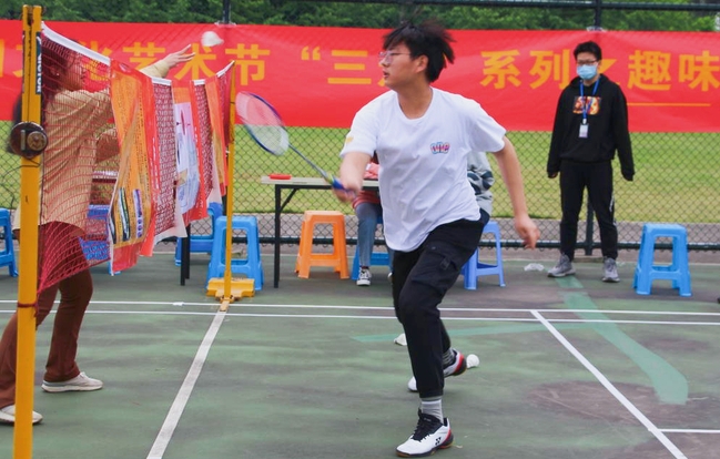 为深入学习贯彻习近平总书记关于加强青少年体育教育的一系列重要论述,落实全民健身和健康中国国家战略,着力提高大学生的身体素质,进一步推进国产视频 “青春爱运动 健康强中国”主题全民健身活动,4月30日,由国产视频 学生会体育部主办、大学生乒羽社承办的第七届校园文化艺术节“三走”系列活动之趣味羽毛球比赛于校园内举行。