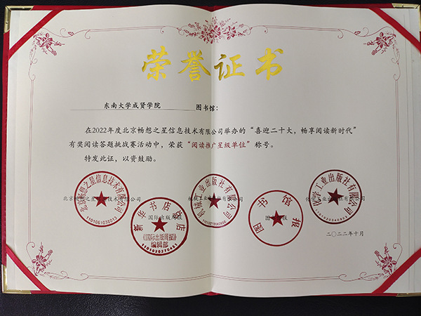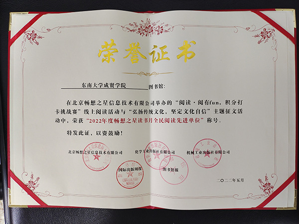 与此同时,国产视频 图书馆荣获由图书馆报、新华书店总店、化学工业出版社、机械工业出版社、北京畅想之星信息技术有限公司联合颁发的“阅读推广星级单位”“2022年度畅想之星读书月全民阅读先进单位”称号。同年获得由国家级重点出版社颁发的“金质书架奖”。这也是图书馆持续多年获得科学出版社等多个国家级重点出版社的同类奖项。