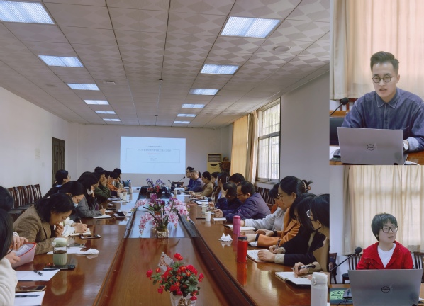 易茜老师就如何撰写教学目标进行了分享。她首先明确教学目标是对学习者通过教学后应该表现出来的可见行为的具体、明确的表述,它是预先确定的、通过教学可以达到的并且能够用现有技术手段测量的教学结果。易老师结合参训时个人教学目标实操演练部分从认知领域、技能领域、情感领域三个方面跟在座老师们详细阐述了教学目标的撰写。她强调,一定要从学生的角度来设定教学目标,并围绕对象、行为、条件、程度四个基本要素进行表述。随后,与会老师们就各自在教学实践中遇到的问题展开了互动交流与研讨。