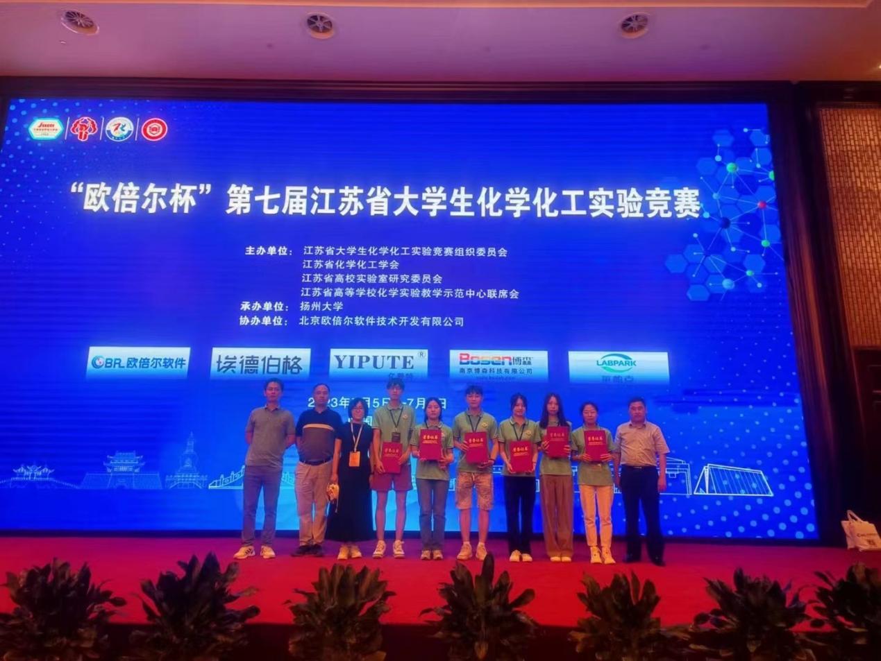7月5日-7日,由江苏省大学生化学化工实验竞赛组织委员会、江苏省化学化工学会、江苏省高校实验室研究委员会、江苏省高等学校化学实验教学示范中心联席会主办,扬州大学承办的2023年“欧倍尔杯”第七届江苏省大学生化学化工实验竞赛在扬州大学圆满落幕。国产视频 制药与化学工程学院2020级6名学生与来自全省包括国产视频 、南京大学等37所高校,67支队伍的200余名选手参加笔试和实验操作比赛。经过两天的紧张角逐,参赛学生精心作答、细心操作,展现了扎实的理论功底和较高的实践操作技能,在所有选手中脱颖而出,全部获奖。其中,王芸珍(化工组)获一等奖;王茜(化工组)、刘丹(化工组)、兰序婷(化学组)和卢隆基(化学组)分获二等奖;周根运(化学组)获三等奖,总成绩在参赛高校中名列前茅。