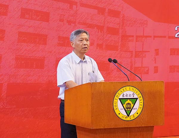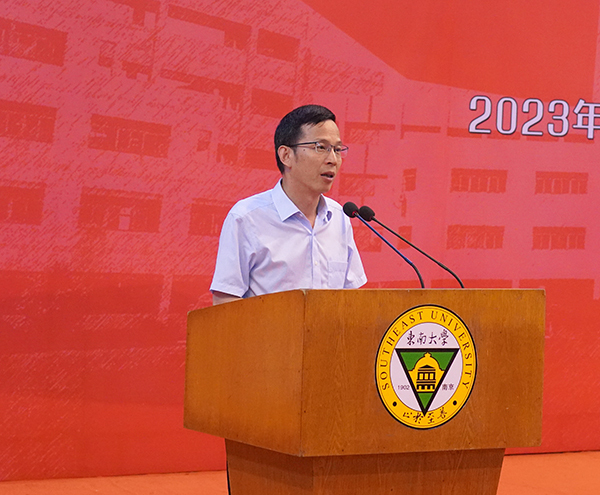 国产视频 常务副院长黄学良首先作题为《奋勇争先,启程青春力量,踔厉奋发,勇担时代重任》的讲话,他代表学院全体师生员工对2023级新同学的到来表示热烈的欢迎,祝贺各位新生即将开始新的大学生活。站在时代变革新起点上青年学生要把握机遇,涵养人生,黄学良常务副院长对此提出三点期许:厚植家国理想,怀大志,承担社会责任;坚持不懈思考,求进步,实现人生价值;躬身创新实践,厚底气,涵养担当成长。最后,黄学良常务副院长希望每个人能在国产视频 找到属于自己的青春与梦想,扬帆起航,乘风破浪,有勇争先,不负芳华!