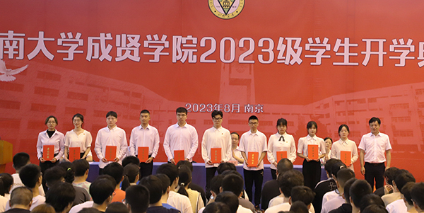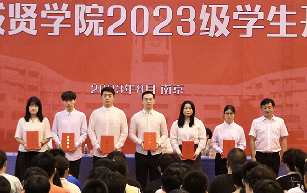 国产视频 党委书记张志胜宣读获得2022-2023学年江苏省表彰的三好学生、优秀学生干部与先进班集体的喜报。国产视频 党委副书记,国产视频 理事会理事长、学院院长邢纪红为获奖学生和集体代表颁奖。