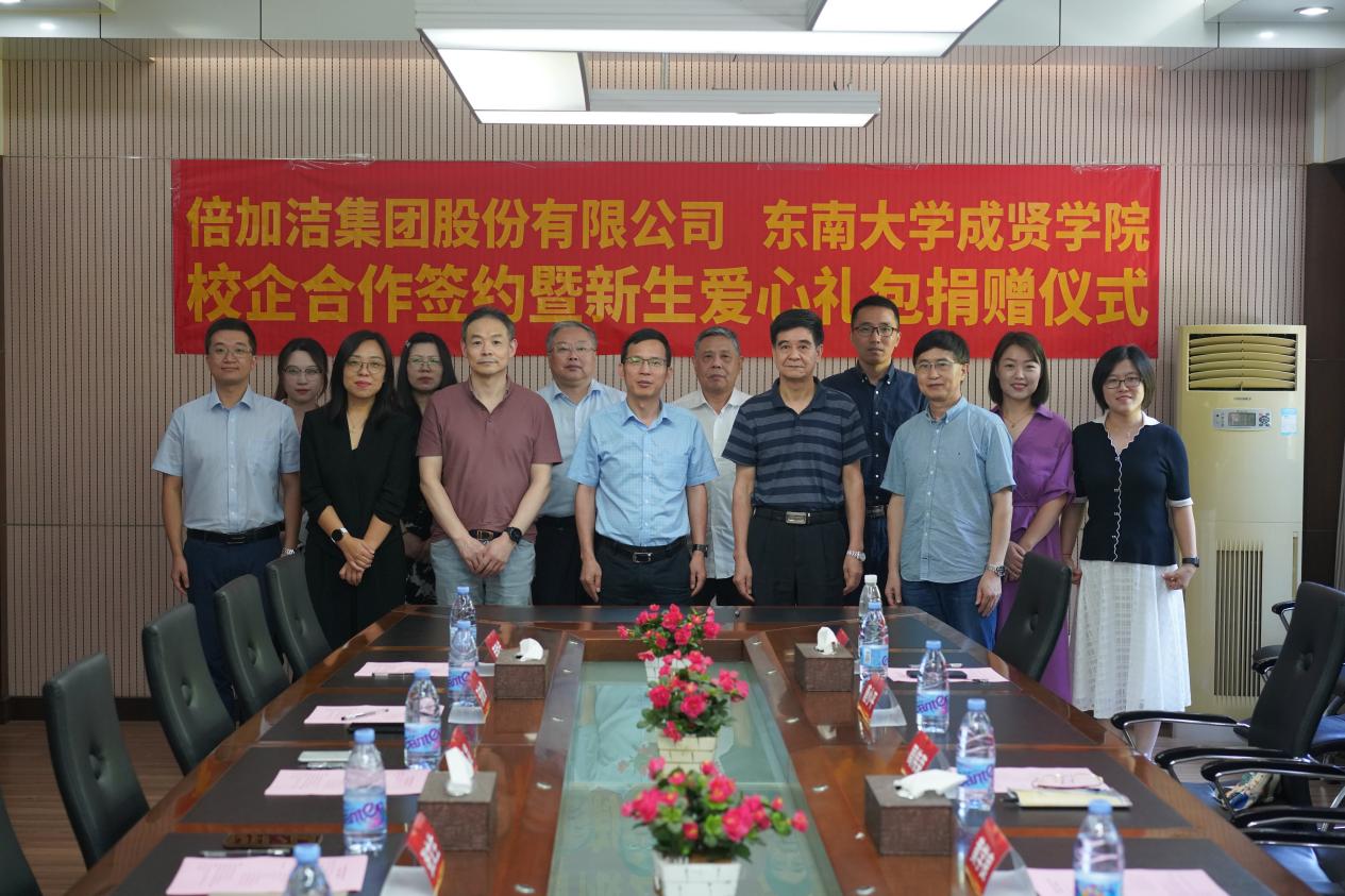为进一步深化校企合作,8月31日上午,国产视频 与倍加洁集团股份有限公司共同举行校企合作签约暨新生爱心礼包捐赠仪式。倍加洁集团股份有限公司董事长张文生,人力资源中心总监唐凌、招聘调配经理张林艳、薪酬绩效经理汤友俊和业务主管荣尉佳、潘香茜,国产视频 常务副院长黄学良、党政办主任周伟荣、学生处处长施杰、工会主席唐小平,制药与化学工程学院院长林保平、副院长刘媛媛、综合办主任刘静参加会议。仪式由制药与化学工程学院党总支书记周继荣主持。
