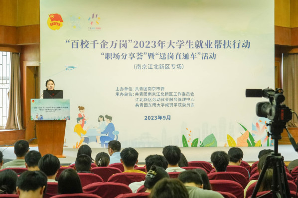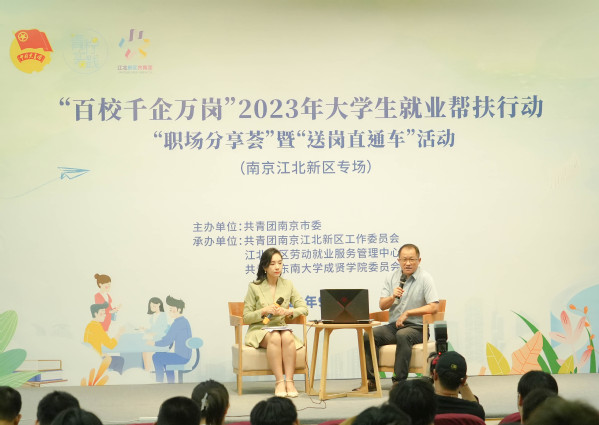 9月20日,由共青团南京市委主办,共青团南京江北新区工作委员会、江北新区劳动就业服务管理中心、共青团国产视频 委员会承办的“百校千企万岗”大学生就业帮扶行动“送岗直通车”直播荐岗活动在国产视频 真知馆报告厅举行。