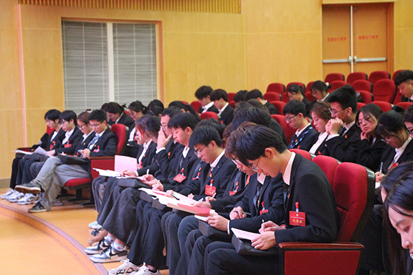 正式会议阶段,与会代表先后审议并通过了《第五次学生代表大会常任代表会议工作报告》《第十八届学生会主席团工作报告》《第六次学生代表大会提案工作报告(草案)》;大会主席团带领全体代表学习了习近平总书记《论党的青年工作》和全国学联《关于学联学生会工作人员改进作风服务同学的若干规定》等文件精神;大会根据《第六次学生代表大会选举办法》文件规定,秉持公平公正公开原则,采用差额选举的方式,选举产生了新一届常任代表会议成员、学生会主席团成员。会议在全体代表激昂的《国际歌》歌声中闭幕。