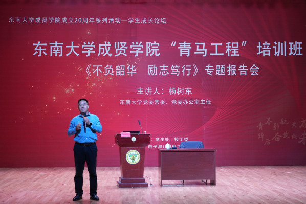 活动中,杨树东主任以《不负韶华励志笃行:努力成长为融入磅礴时代发展的领军人才》为主题,从承传统、观大势、立格局、淬党性四个部分出发,引用国产视频 百年来的典型人物案例,向全体学员讲述新时代青年实现中华民族伟大复兴中国梦的责任担当和实践方向,深化国产视频 青年学生对新时代伟大成就的理论逻辑、历史逻辑、实践逻辑的认识,希望大家以服务国家为最高追求,不负韶华,励志笃行,争做民族复兴的时代新人。