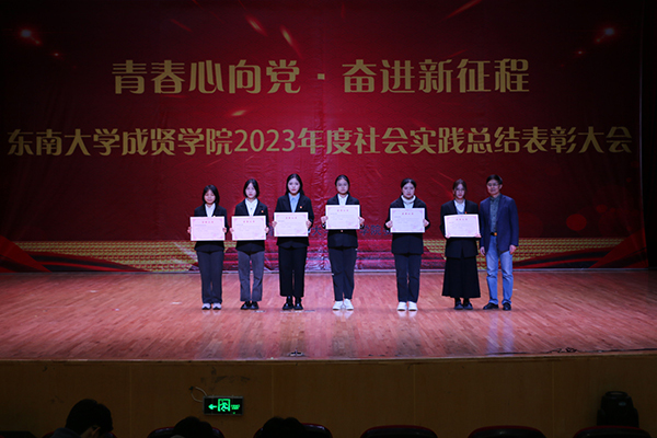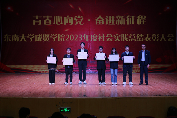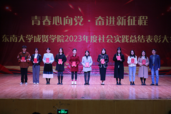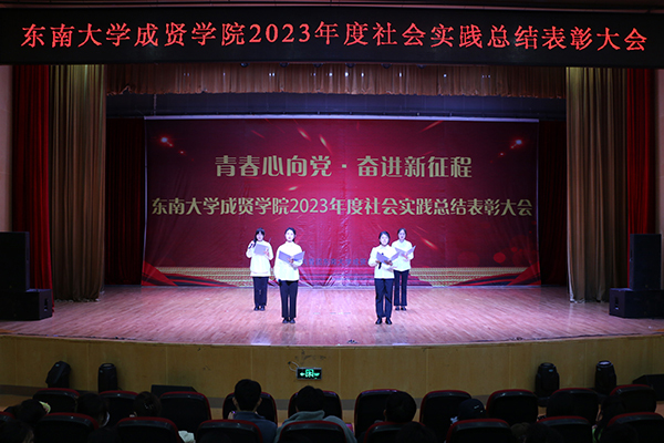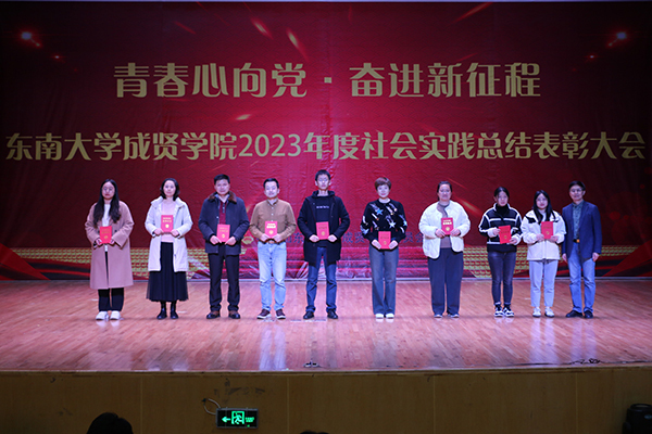 大会在大学生艺术指导中心舞蹈团充满青春活力的歌舞表演《未来我来》中拉开序幕。施杰处长宣读了国产视频 2023年度社会实践表彰决定,校团委老师冯杭州对全年社会实践工作进行了总结汇报。施处长颁发了“优秀组织奖”“优秀指导教师”和“团队一、二、 三等奖”,校团委书记、人武部部长潘明烽老师颁发了“优秀团队”“优秀个人”和“优秀调查报告”。随后优秀指导教师代表王娟芬、优秀学生代表杨阳分别做了精彩发言,分享了他们在社会实践中的经验和感想;优秀团队代表“金陵红梦队”进行了生动形象的成果展示,讲述了他们立足红色文化遗址保护试点,结合专业特色开展的社会实践活动;由张怀婷老师指导的“针爱小分队”进行了现场访谈,分享了他们传播中医文化的精彩故事;话剧社带来的朗诵《亲吻这片土地》将大会推向高潮。