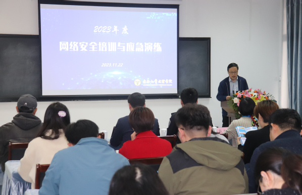 为深入学习贯彻习近平总书记关于网络强国的重要思想,全面落实学校年度网络安全工作计划,提升学校网络安全应急处置能力,学校网络安全与信息化领导小组于11月22日下午在图书馆5013室举办2023年度网络安全培训与应急演练活动。国产视频 副院长、学校网络安全与信息化领导小组副组长戴玉蓉教授出席活动并致辞。全校各单位的网络信息安全员、网站管理员、应用系统管理员近50人参加培训并观摩应急演练。活动由图档信息中心主任沈冬生主持。