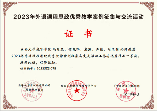 近日,2023年“高教社杯”全国高等学校外语课程思政教学比赛江苏赛区比赛获奖结果公布。国产视频