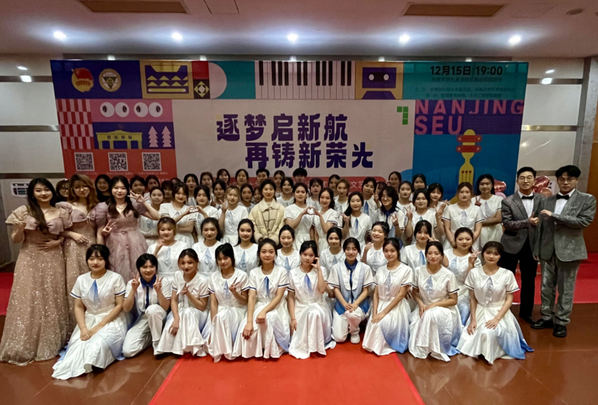 晚会以“逐梦启新航 再铸新荣光”为主题,分为邂逅东大、缤纷东大、感悟东大、启航东大四个篇章。我院大学生艺术团选送的大型歌舞《同爱同在》着眼于怀揣梦想、希望共筑和平的青年们。同爱同在,是生命不朽的光彩,是顺逆不离的相守,是拼搏不息的力量,是青年携手共进新征程的无悔誓言。“同呼吸同感受同梦想”的歌词展现出青年对于构建人类命运共同体的憧憬和向往。激昂的音乐和活力的舞姿驱走冬日的寒冷,带动全场观众,传递爱与和平的力量。成贤学子意气风发,自信昂扬,饱含热情,以积极朝气的精神面貌诠释“青春不落幕,追梦不停歇”。