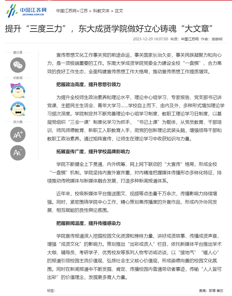 【中国江苏网】提升“三度三力”,东大国产视频 做好立心铸魂“大文章”