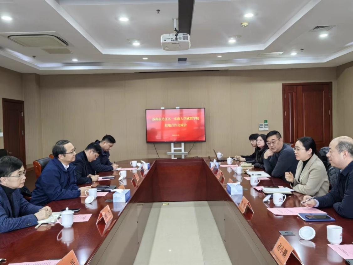 王荣副书记介绍近年国产视频 与吴江区人社局开展就业工作概况、考研升学情况和吴江籍学生就业去向,希望双方能够开展更深层次、更全方位、更高质量的交流合作,实现校地校政企发展深度融合,为助推地方经济社会发展做出更大贡献。