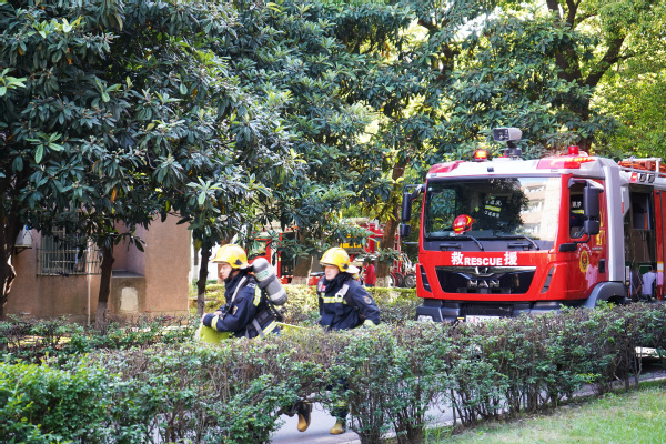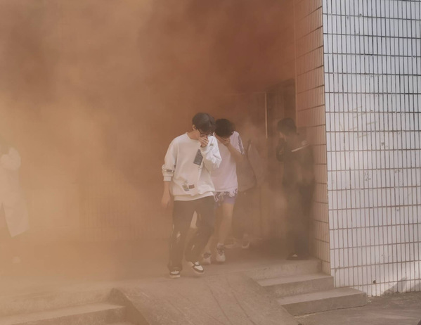 在模拟“火情”的警报鸣响后,工作人员第一时间赶赴现场,引导学生有序疏散至室外平台区域。同时,消防车到达现场,消防员在国产视频 工作人员的协助下完成楼内人员搜索及清点等工作,最终全部人员安全疏散,整场活动井然有序。本次演练在引导疏散的基础上还增加了“固守待援”技能训练,模拟了在突发情况下室内人员无法逃生等待救援的情况,锻炼了相关人员的应急处置和避险能力。