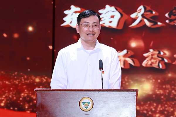 视频《青年青春奋斗》和开场舞《你最最最重要》展现了成贤青年活泼热情的青春风貌,大会在师生齐唱《中国共产主义青年团团歌》的澎湃旋律中拉开帷幕。王荣副书记在致辞中向全校一万多名青年师生致以节日的问候,向此次受到表彰的集体和个人表示热烈的祝贺。他希望成贤青年一是要学党史增信心,做理想信念坚定的爱国者;二是要强德行提修为,做社会主义核心价值观的践行者;三是要勤学习强本领,做中华民族伟大复兴的奋斗者。各级团组织要以青年为中心,为青年成长成才提供更广阔的舞台,强化团员青年对习近平新时代中国特色社会主义思想的政治认同、思想认同、理论认同和情感认同,牢牢把握当代爱国主义本质,把赤诚报国之志建立在对马克思主义的信仰、对中国特色社会主义的信念、对中华民族伟大复兴的信心上,树立起为祖国、为人民永久奋斗、赤诚奉献的坚定理想,为加快形成新质生产力推动高质量发展贡献青春智慧,不断书写为中国式现代化挺膺担当的青春篇章,以实际行动迎接新中国成立75周年!
