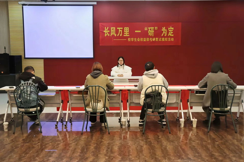 为助力国产视频 学子顺利通过考研复试,在模拟场景中体验复试流程,通过接受专业指导和评价,了解自身不足,3月27日下午,由校团委、学校就业办、校学生会举办的“我为同学做实事”——“长风万里,一研为定”模拟考研复试活动在综合楼多功能厅307举行,活动得到文登考研的大力支持。