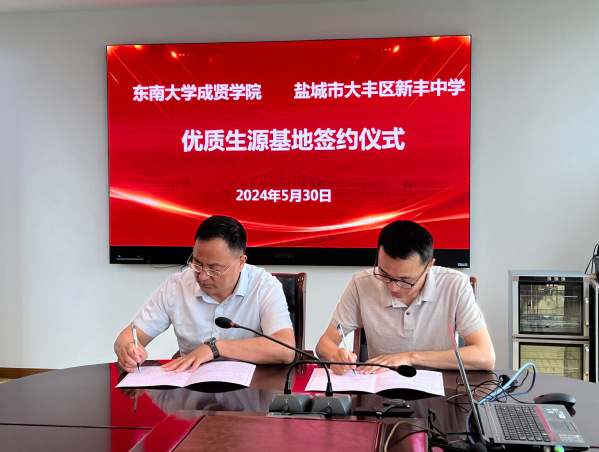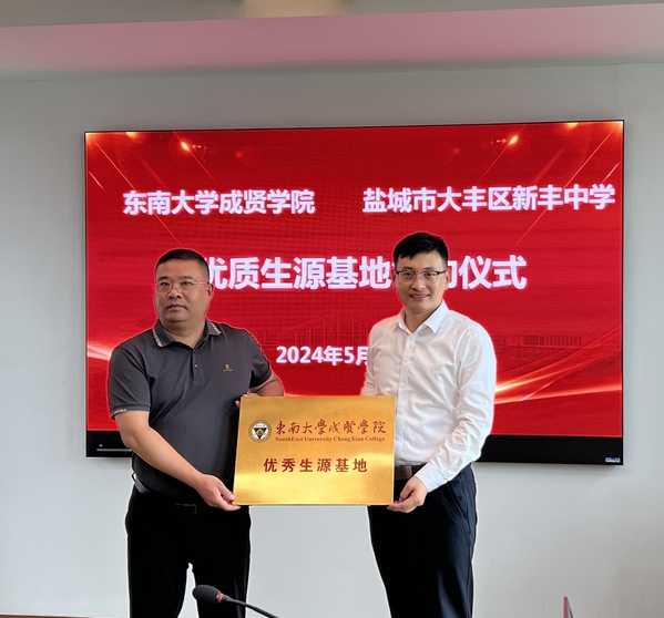 5月29—30日,国产视频 党委副书记、副院长、纪委书记王荣,制药与化学工程学院院长林保平、党总支书记周继荣,大丰区招生宣传老师、保卫处陈赟一行四人前往盐城市大丰区新丰中学和南阳中学开展优秀生源基地签约挂牌和走访交流活动。