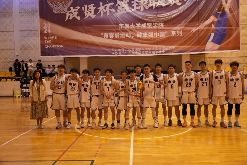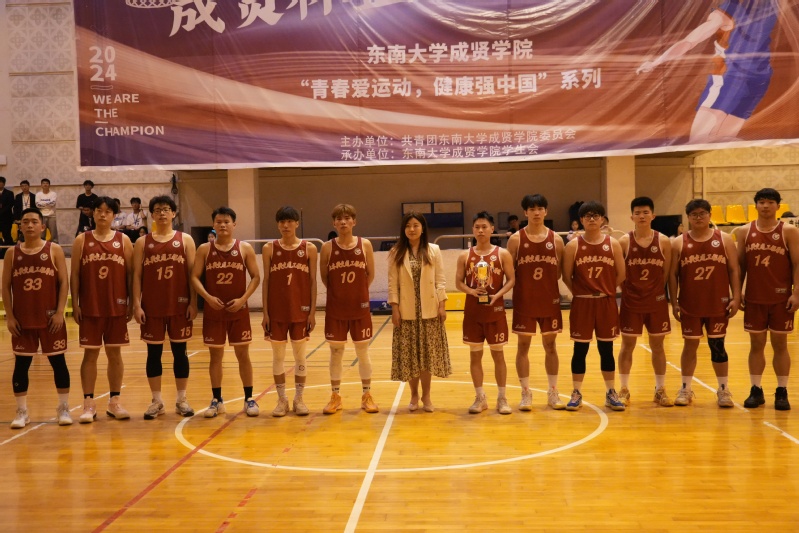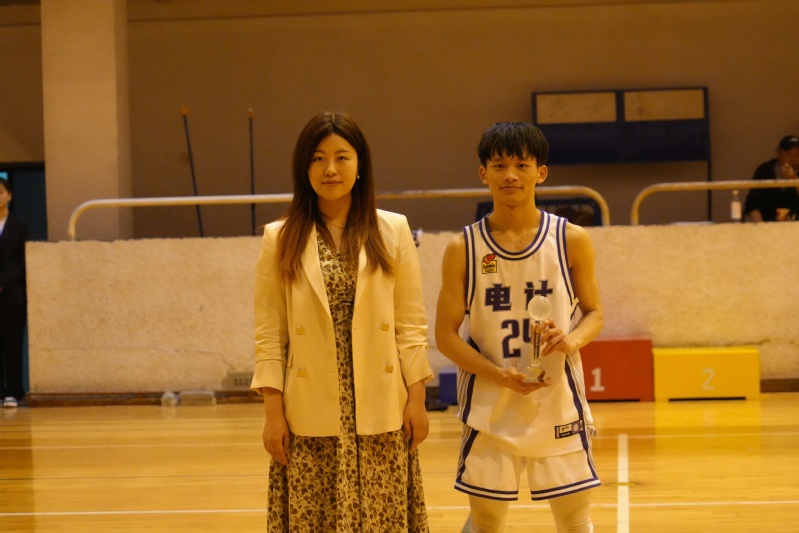 决赛的气氛紧张而热烈,每个上场的球员都全情投入,他们矫健的步伐、华丽的运球,赢得了观众们的阵阵欢呼声与掌声。最终,电子与计算机工程学院队通过球员们的全力配合,一路披荆斩棘赢得了比赛的冠军,土木与交通工程学院队获得了亚军。校团委兼职副书记潘天娇为本次成贤杯篮球联赛的冠、亚、季军及MVP得主颁奖并合影留念。