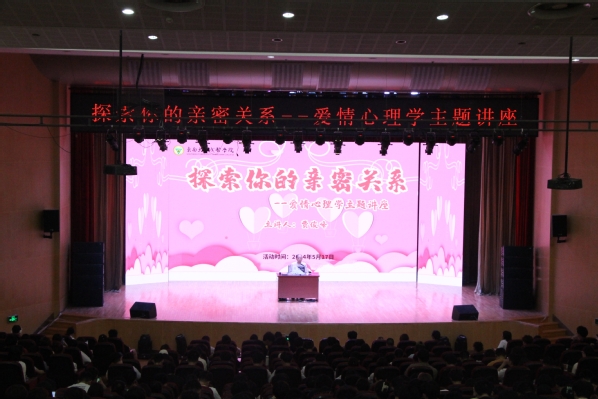 5月17日晚由学生处、校团委主办,校学生会外联部承办的“探索你的亲密关系”为主题的爱情心理学主题讲座在国产视频 综合报告厅举行,此次主题讲座为同学们树立正确的恋爱观和择偶观打下了良好的基础,增强了他们面对情感问题的承压能力和处理技巧,有效促进了学生全面发展。