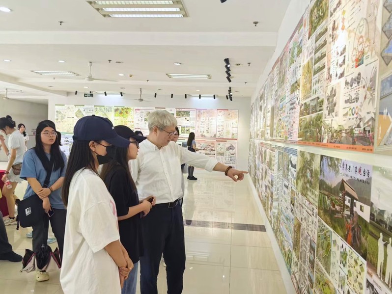 建筑与艺术设计学院常务副院长杨冬辉及副院长王娟芬全程参与了此次课程作品展。杨冬辉常务副院长作为风景园林专业的评审专家,他对风景园林学生作品一一进行了详尽的点评,针对设计细节、空间布局、艺术表现等方面提出了建议,更提出了融合设计功能性与艺术表现力的专业发展理念。同时,他还与各位专家进行了深入交流,分享了学院在教学理念、课程设置、人才培养模式等方面的优化调整和综合改革。专家们对学院的改革和创新举措表示充分赞赏,强调了跨学科合作的重要性,并就如何进一步提升教学质量、增强学生实践能力提出了宝贵的意见和建议。