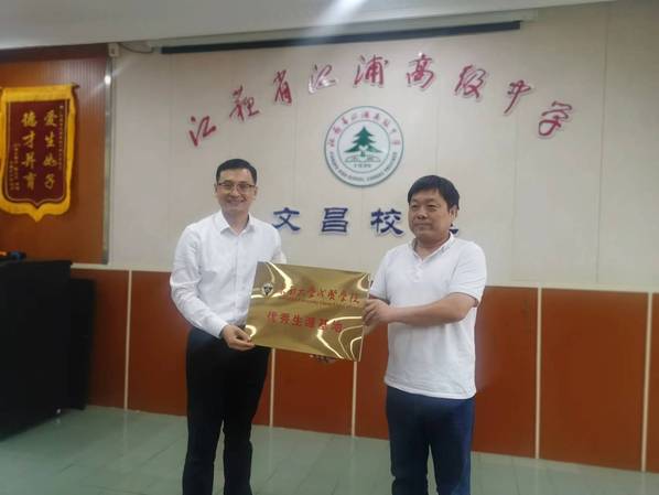 6月24日,国产视频 党委副书记、副院长、纪委书记王荣,保卫处处长陈学建、学生处处长施杰、学生处处长助理颜秉明,浦口区招生宣传老师一行六人前往南京市浦口区江苏省江浦高级中学和江苏省江浦高级中学文昌校区两所中学举行“优质生源基地”共建仪式。