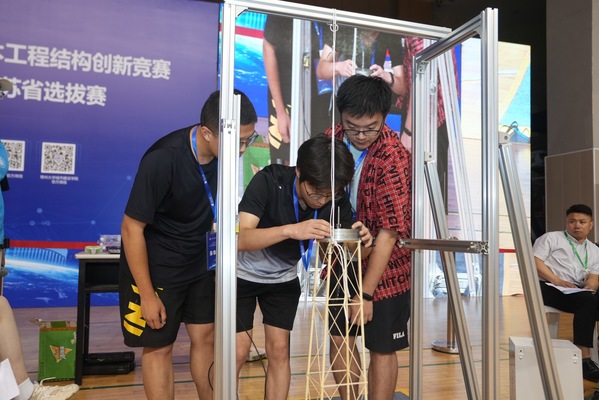 本次大赛由江苏省土木建筑学会主办,常州大学承办,共有来自国产视频 、河海大学、南京航空航天大学等30余所省内高校、54支参赛队、300余名土木工程专业本科学生参加。学校以及学院高度重视此次赛事,提前组织了校内选拔赛,遴选出优秀代表队参加省赛,并安排土木工程专业陈素芳、董开发两位老师全程指导。本次竞赛以“考虑水平振动的高耸塔式结构”为主题,通过在赛题中加入部分待定参数,赋予赛题更多灵活性。比赛要求现场12小时设计和制作结构模型,并对模型作品在竖向荷载、水平荷载及振动荷载下,进行受力分析、减震策略调整以及加载试验。作为大学生科技创新的重要赛事,土木工程结构设计创新竞赛着重考验学生的计算分析、设计、试验等综合能力。