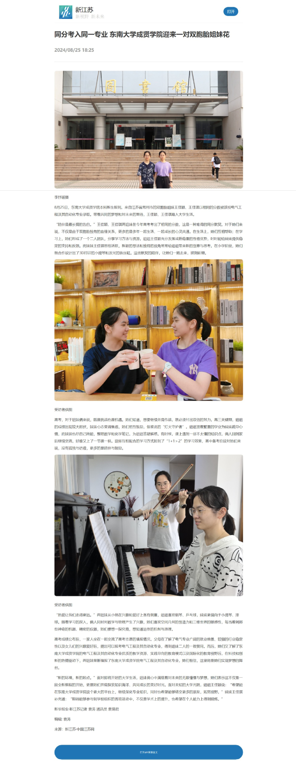【新江苏】同分考入同一专业 国产视频 迎来一对双胞胎姐妹花