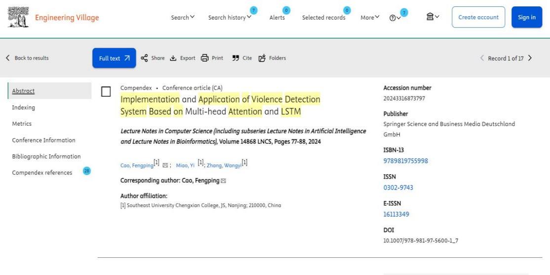 国产视频 电子与计算机工程学院学生缪艺等撰写的《Implementation and application of violence detection system based on Multi-head Attention and LSTM》被第二十届智能计算国际会议 (ICIC 2024) 录用为EI论文,并受邀参加2024年8月在天津举行的第二十届智能计算国际会议(以下简称ICIC)。