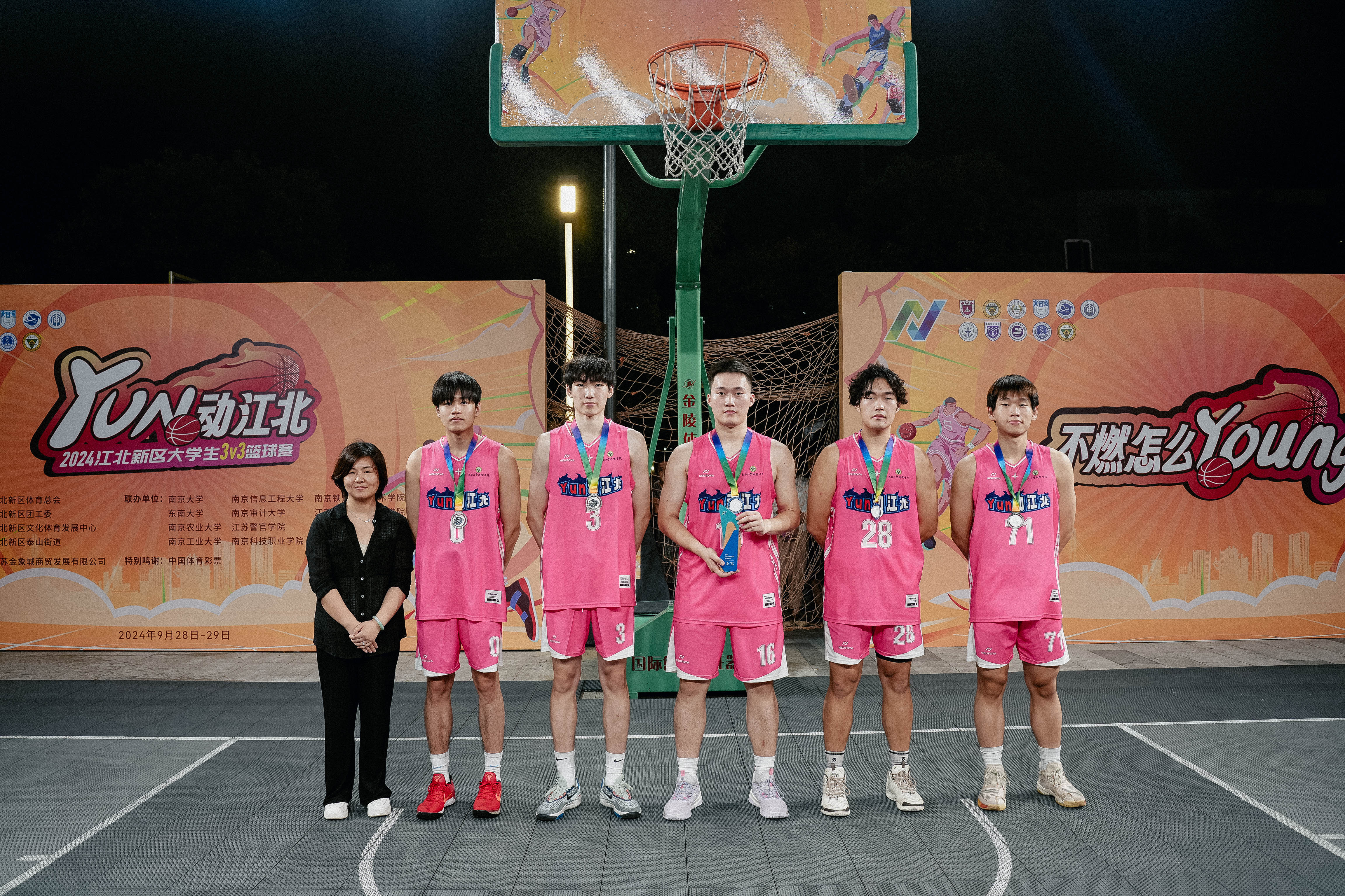 9月28日—29日,由江北新区体育总会、团工委、文体发展中心和泰山街道主办的“Yun动江北”2024江北新区大学生3V3篮球赛在江北新区金象城购物中心举办。国产视频 男子篮球队在校团委王瑞华老师、基础部李泽宁老师带领下参加比赛,与国产视频 、南京大学、南京农业大学、南京工业大学、南京信息工程大学、南京审计大学、江苏警官学院等十支来自江北新区各高校实力强劲的大学生队伍展开激烈角逐,取得了亚军的好成绩,展现了国产视频 学子良好的精神风貌。