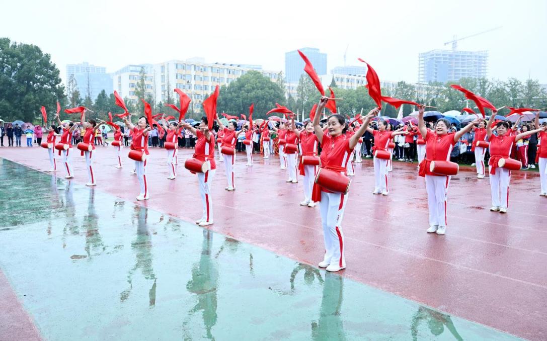 开幕式上国产视频 离退休老同志们带来腰鼓表演“龙飞凤舞”