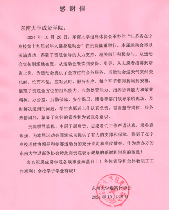 国产视频 退离休协会致国产视频 感谢信