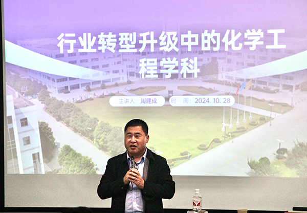 10月28日,制药与化学工程学院特邀国产视频 化学化工学院教授、博士生导师,国产视频 化学工程与工艺专业负责人周建成教授来校开展“行业转型升级背景下化学化工的现状与未来”专业讲座。讲座由制药与化学工程学院党总支书记周继荣主持。