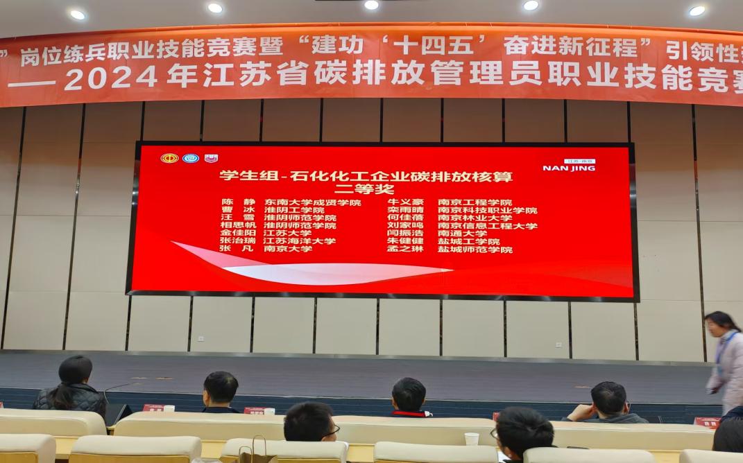 11月29日至30日,由江苏省机冶石化工会、江苏省能源行业协会主办的首届江苏省碳排放管理员职业技能竞赛在南京工业大学举行。本次比赛共有来自南京大学、中国矿业大学、南京信息工程大学等60多所高校的学生和江苏省各地发电、钢铁、石化化工和建材企业中从事碳排放管理的在职人员共200多位选手参加。国产视频 制药与化学工程学院陈静、姜晓博、赵春雨三人,在经过理论初赛和实操复赛之后,凭借过硬的专业知识分别获得学生组二等奖、三等奖。