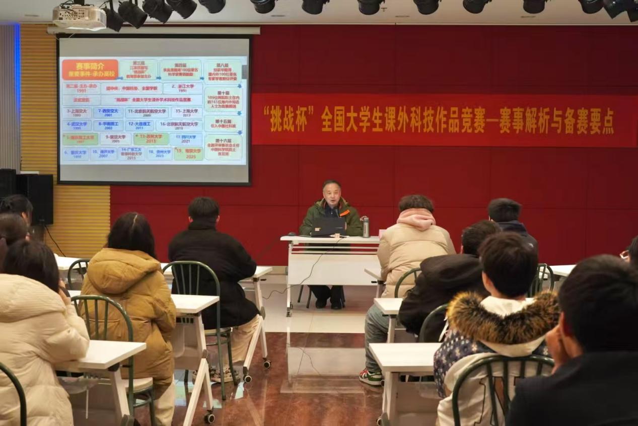为进一步加大实践育人力度,营造浓厚的科研学术氛围,激发培养广大青年的创新精神和创业意识,促进国产视频 学生创新、创业活动蓬勃开展,孵化培育2025年“挑战杯”备赛项目,12月11日晚,校团委在综合楼报告厅开展“‘挑战杯’全国大学生课外科技作品竞赛——赛事解析与备赛要点”讲座。本次讲座特邀请“挑战杯”资深评委、教育部双创专家林岭教授为各学院备赛选手、各协会骨干成员作专题辅导报告。