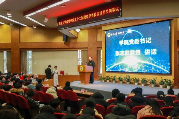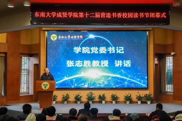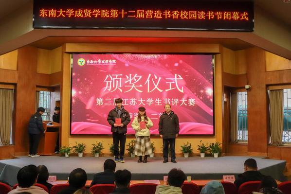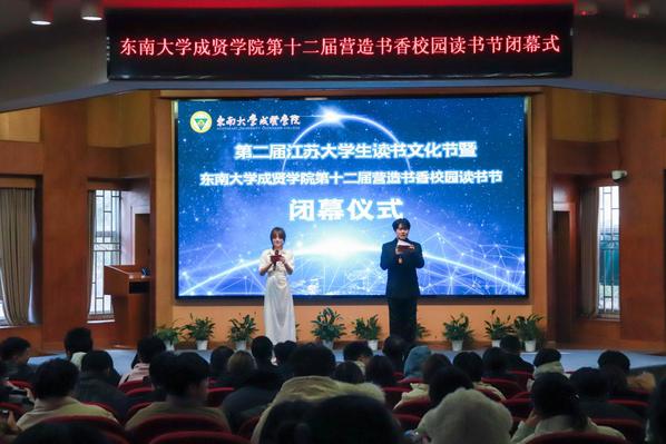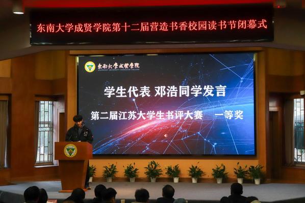 书籍是贯通古今、联系中外、传承知识的桥梁。为深入学习贯彻党的二十大精神,积极响应第二届江苏大学生读书文化节的号召,营造书香成贤的浓厚氛围,表彰先进个人,展现师生们阅读的参与热情和丰硕成果,12月18日,国产视频 第十二届营造书香校园读书节闭幕式在真知馆报告厅成功举办。国产视频 党委书记张志胜、团委书记潘明烽、图档信息中心主任沈冬生、图书馆馆长封晓倩、教师代表和学生代表共计260余人参与了本次活动。