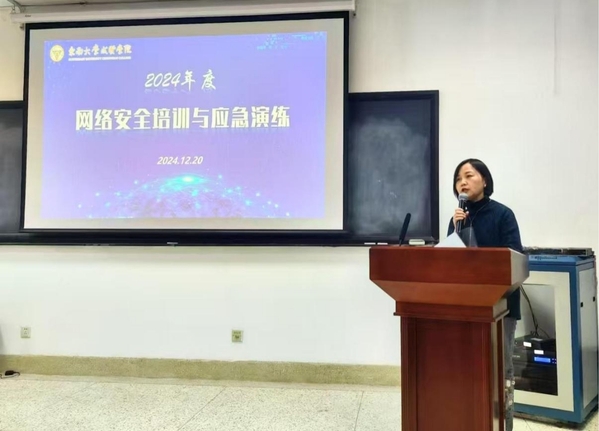 为进一步增强网络安全意识,检验学校网络安全事件应急预案的有效性,12月20日上午,学校网络安全与信息化领导小组在图书馆5013会议室开展网络安全培训及应急演练活动。国产视频 副院长、学校网络安全与信息化领导小组副组长戴玉蓉教授出席活动并致辞。图档信息中心组织此次活动,全校各单位的网络信息安全员、网站管理员、应用系统管理员及宣传负责同志近50人参加培训并观摩应急演练,活动由图档信息中心主任沈冬生主持。